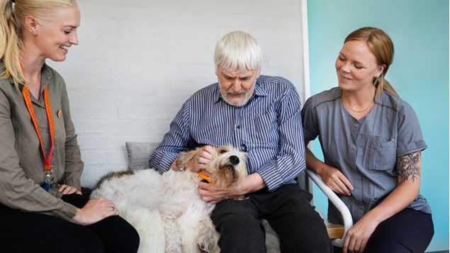 I slutningen af maj blev demenscentret Bakkegården i Bagsværd fyldt med logrende haler og forventningsfulde hundeejere. Her afholdt TrygFonden nemlig optagelsesprøve for nye besøgshundeteams, som ønsker at sprede smil og gode minder på plejehjem og -boliger som en del af TrygFondens besøgshundekorps.
