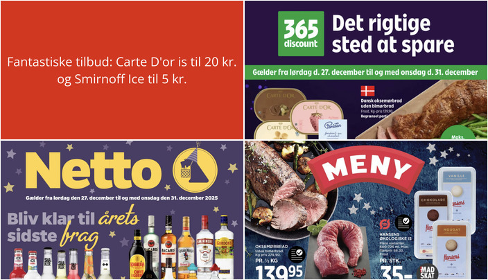 Hos Meny kan du nyde Hansens Økologiske Is i flere varianter til en pris på kun 35 kr. pr. stk. Størrelserne varierer fra 600-725 ml, og isen er frost. Tilbuddet er gældende fra lørdag den 27. december til onsdag den 31. december.