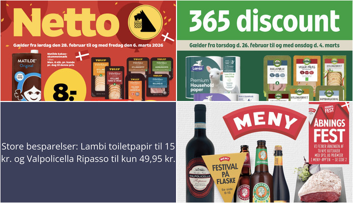 Coop365 tilbyder Lambi Premium toiletpapir eller køkkenrulle til kun 15 kr. pr. pakke. Vælg frit mellem 3-6 ruller. Tilbuddet gælder fra torsdag den 26. februar til onsdag den 4. marts.